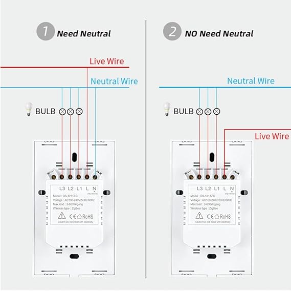The Chevolink DS-1211ZC wall light switch is a smart Zigbee replacement switch for your traditional “dumb” switch. THIS SWITCH DOES NOT REQUIRE A NEUTRAL WIRE and can be installed with or without Neutral. In cases where the lamp wattage is adequate this switch may also operate without a capacitor. Note that this switch requires a Tuya Zigbee Hub / gateway.